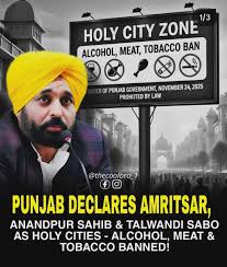 The current ban is therefore a broader and more comprehensive effort that builds on that earlier decision. It also aligns with the state government’s long‑standing policy of alcohol prohibition in public spaces—a stance that has been a key part of the Mann administration’s platform. In 2023, Punjab enacted a law that prohibits the sale of alcohol near schools, hospitals, and places of worship. This new ban on meat and alcohol in the holy cities can be seen as an extension of that same ethos.